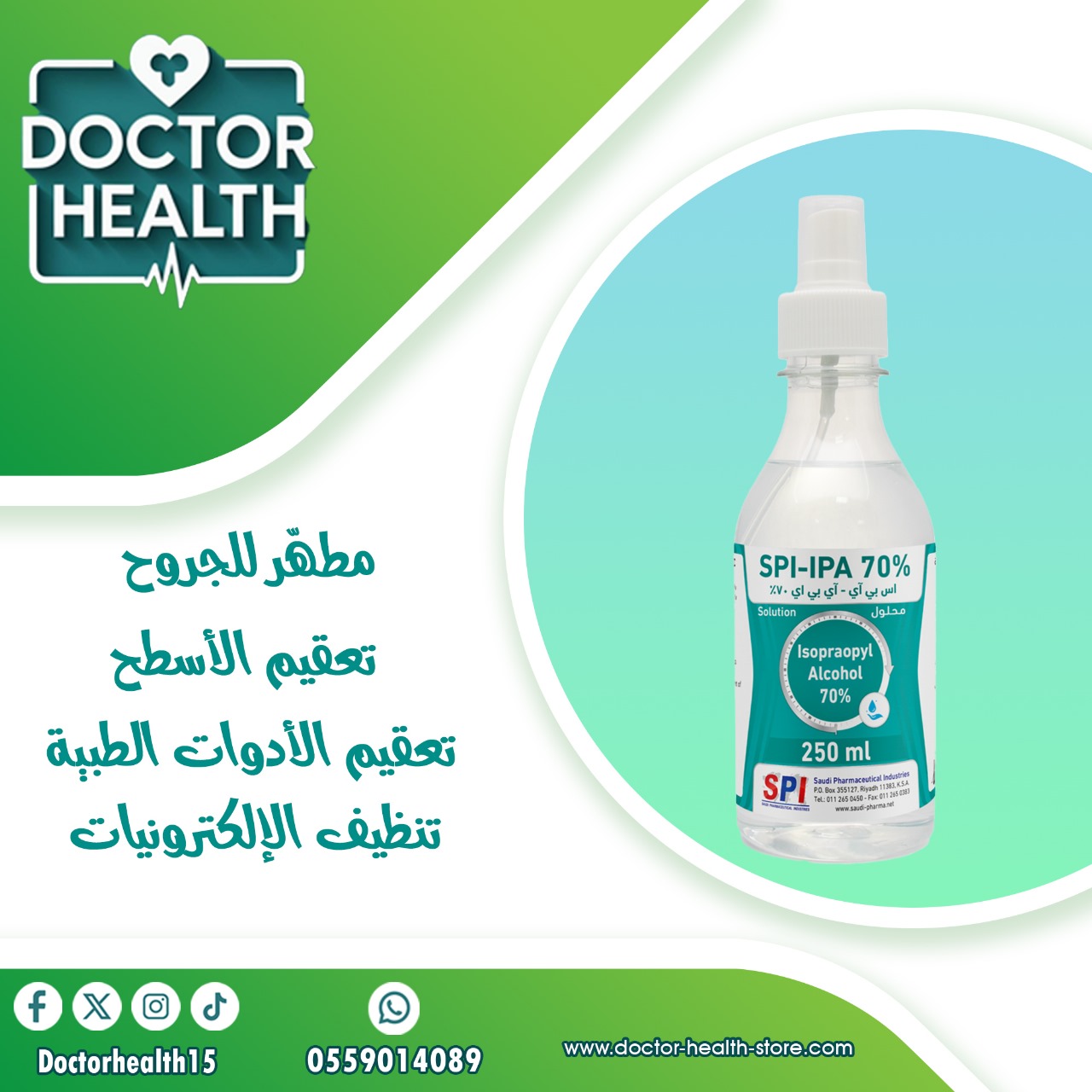 كحول الايزوبروبيل 70% متر معقم للإسعافات الأولية نوصي باستخدامه مع كمامة اير كوين نانوفايبر، التركيب: كحول 70% ايزوبروبيل .