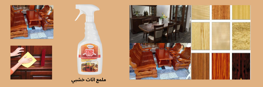 ملمع اثاث خشبي يحتوي علي مواد شمعية عالية الجودة لترك طبقة لامعة وعلي عوامل منظفة لازالة البقعع القديمة